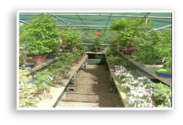 The rear shaded area is an Aladdin's cave of Bonsai trees. There is a wide selection of many varieties and styles all of which will suit most pockets.